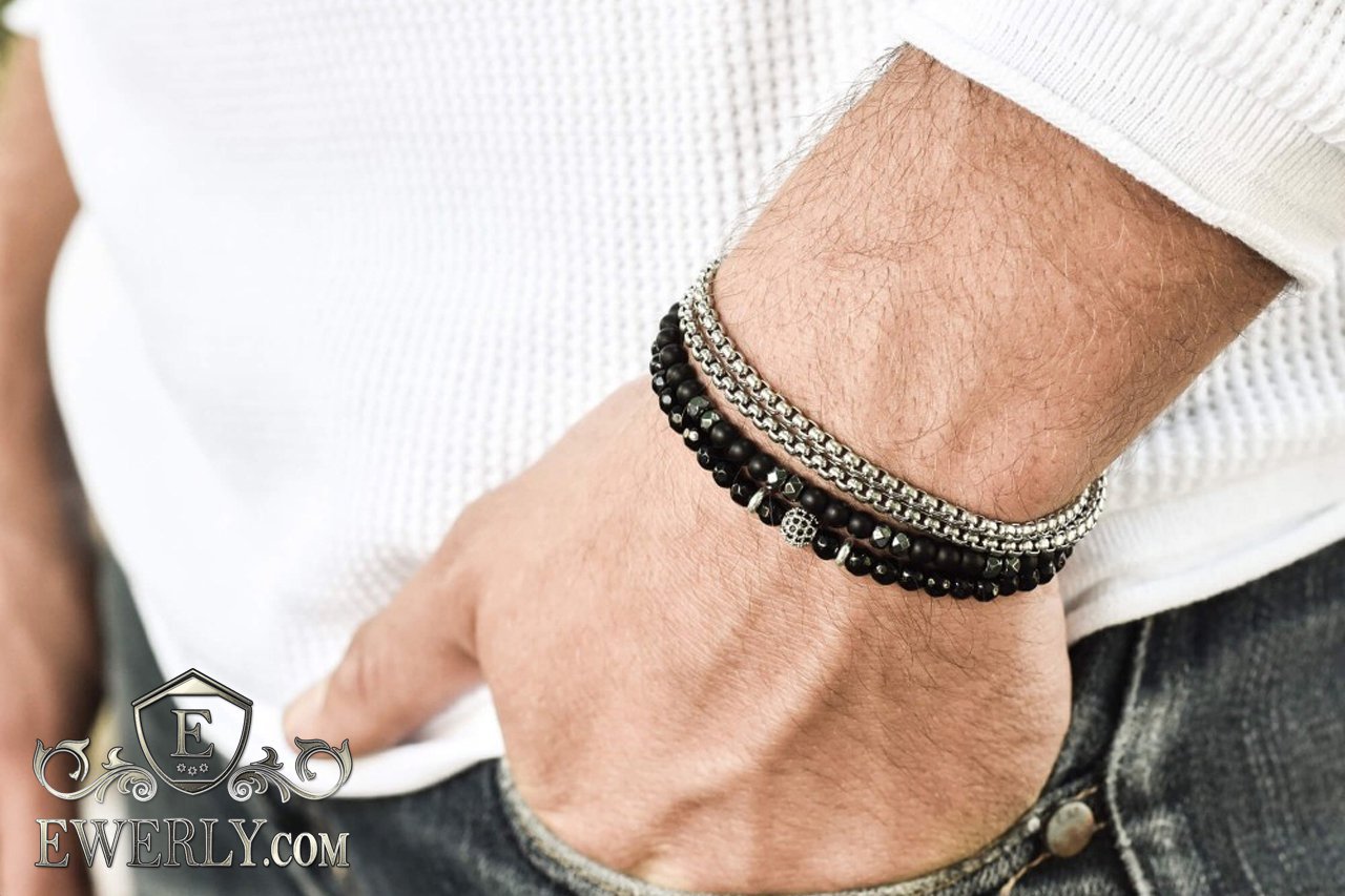 - Два каменных браслета и один металлический визуально разделённый на два.
