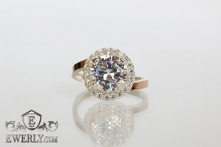 Женское Серебряное кольцо 925 пробы с золотыми вставками 375 пробы с чёрным фианитом.