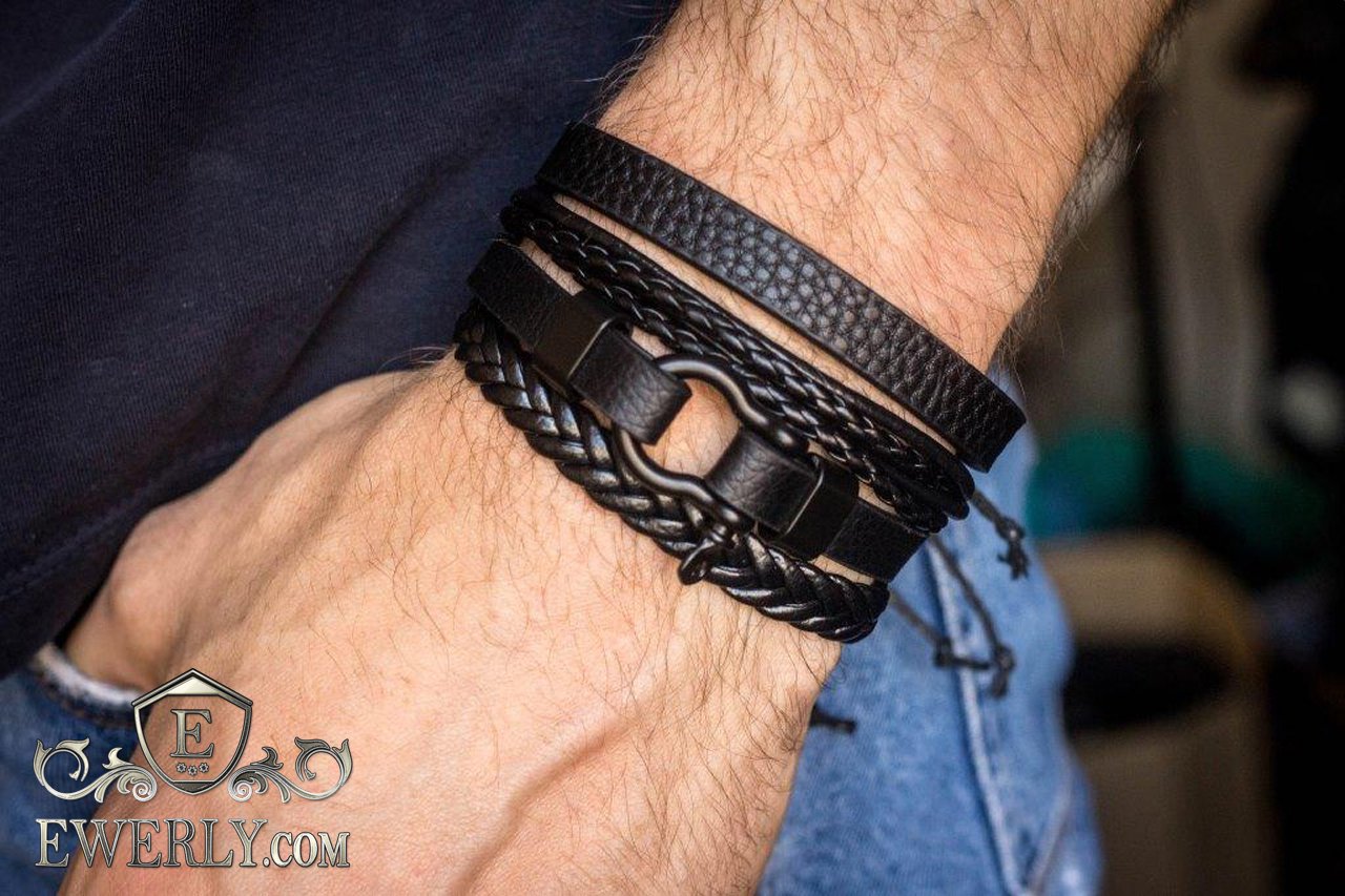 Комплект мужских браслетов из чёрной кожи 124010RQ