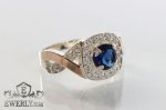 Кольцо из серебра для женщины (925 проба) с золотыми вставками 375 пробы и синим камнем.