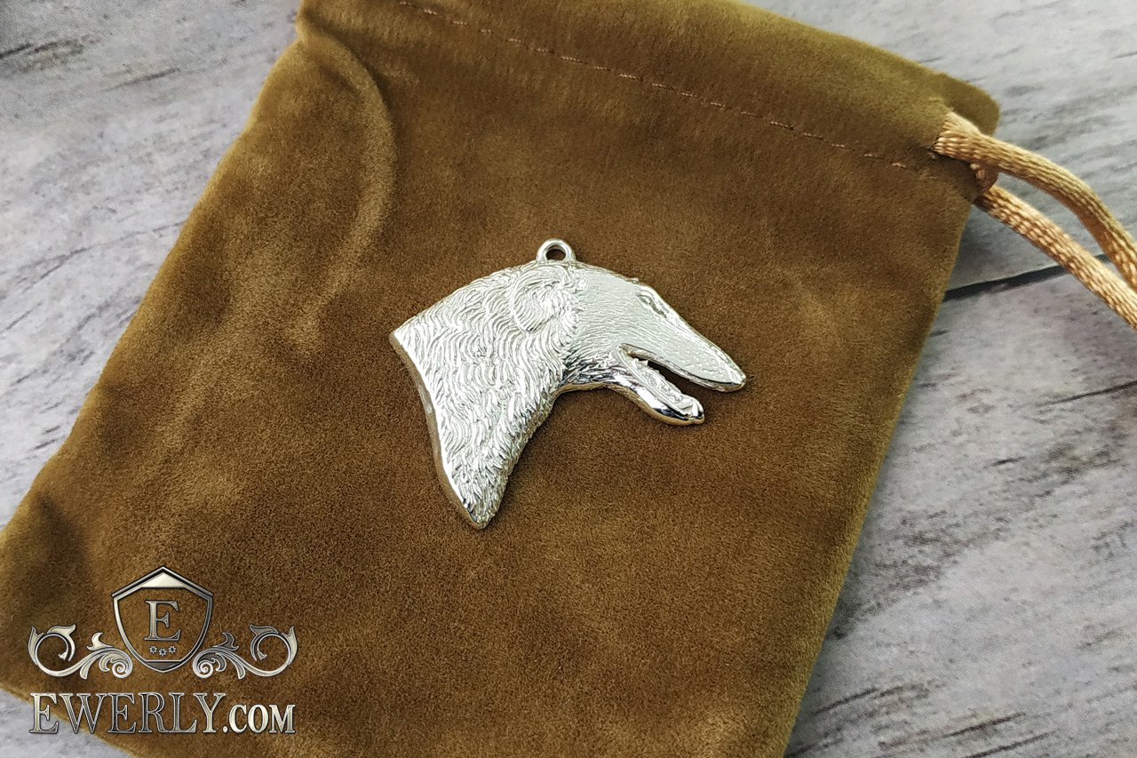 Подвеска-кулон в виде собаки из серебра (голова Борзой)