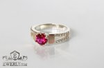 Женское Серебряное кольцо 925 пробы с золотыми вставками 375 пробы и фианитом (цвет - рубин).