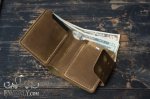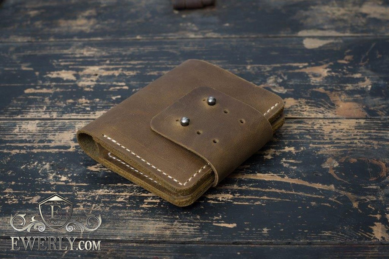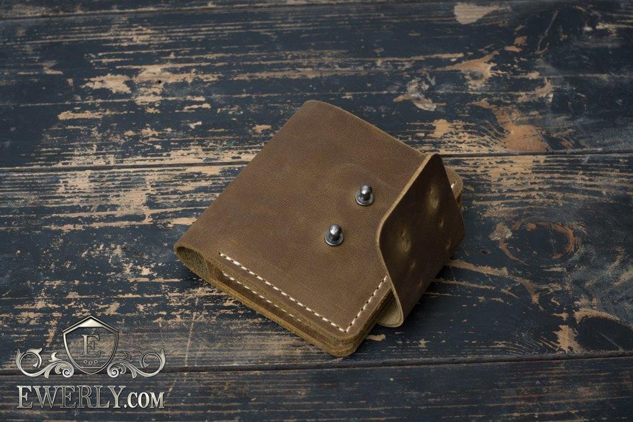 Данное портмоне застёгивается с помощью кобурных кнопок, может показаться, что достаточно ненадёжно, но это не так. Также обращаем Ваше внимание, что отделение для денег не закрыто с одной стороны. За счёт такой конструкции имеет большую вместительность в сравнении с конкурентами - кошельками в этой же нише. Отлично пойдёт в качестве подарка, как весьма уникальная и практичная вещь.