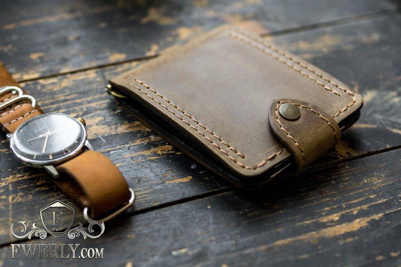 Кожаный зажим для денег (цвет - хаки оливковый) 11024QL