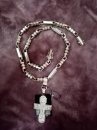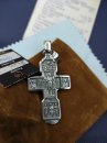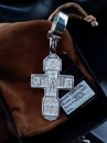 Изображено на кресте: Распятие Христово с предстоящими. Святая Троица. Архангел Михаил. Святые Воины. Тихвинская икона Божией Матери. Большой православный крест с чернением и позолотой.Высота: 8 мм