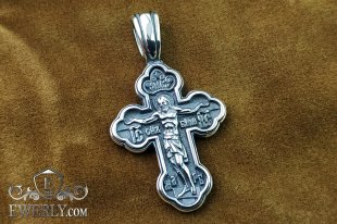 Нательный православный крест из серебра. Распятие Христово.Высота: 4.5 мм