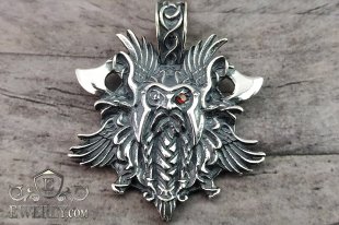 На фото показана двусторонняя серебряная подвеска-кулон с волком с одной стороны и и "Древом жизни" с другой стороны, амулет из серебра 925 пробы на шею.