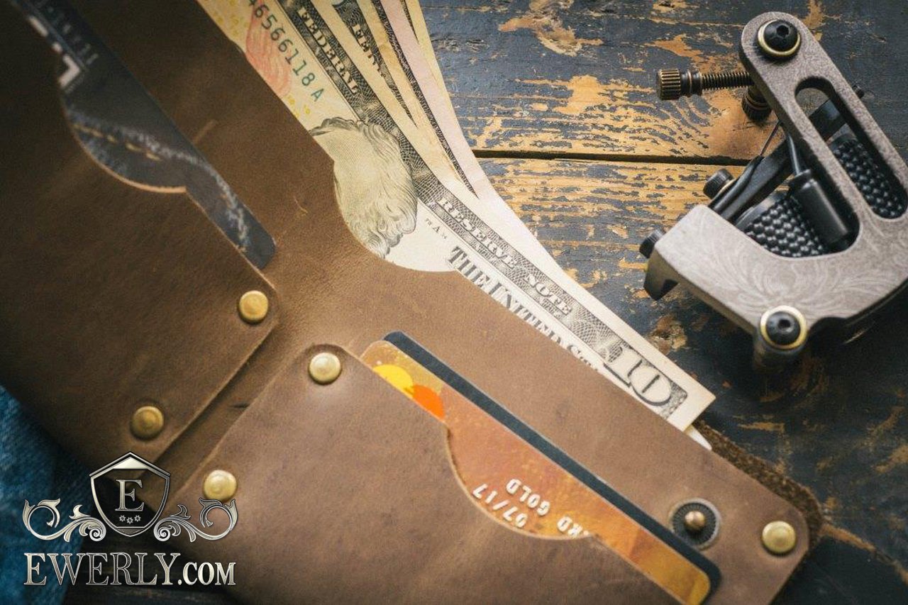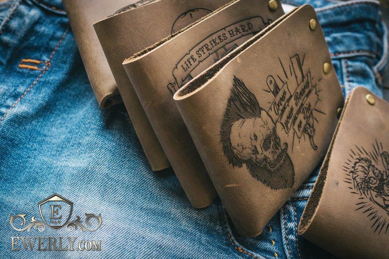 Чоловічий шкіряний гаманець з малюнком і написом "FREEDOM"