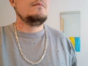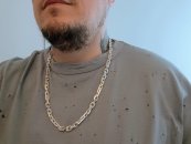Повновісний ланцюжок. Дуже популярне серед чоловіків «плетіння Рамзес», також на просторах інтернету дане плетіння можна побачити під назвою «Подвійний зворотний Бісмарк». Особливо чоловічу увагу привертають товсті срібні ланцюжки з «Подвійного зворотного бісмарка» з розмірами близькими до розмірів на фото. І тим не менше, якщо такий ланцюжок особисто для Вас виглядає на шиї дуже громіздким або навпаки замалим, то Ви без особливих зусиль можете відкоригувати практично будь-який її параметр під свій смак, в тому числі є можливість вибрати як з чорнінням, так і без чорніння або ж з родіюванням.